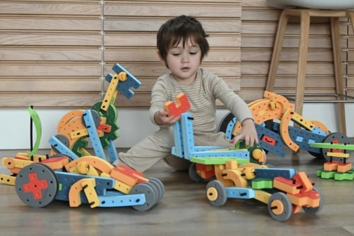 BAKOBA Explorer – Imaginează-ți si construiește! Joc compatibil cu LEGO Un set de construcție premiat și certificat STEM, perfect pentru micii creatori de peste 4 ani. Cu 42 de piese versatile, acest set oferă posibilități nelimitate pentru a construi mașini rapide, bărci plutitoare și multe altele. Dă viață creațiilor adăugând ochii simpatici BAKOBA! Învățare prin joacă – Certificat STEM BAKOBA Explorer nu este doar distractiv, ci și educativ! Dezvoltă abilități esențiale de gândire logică, rezolvare de probleme și creativitate, punând bazele cunoștințelor în știință, tehnologie, inginerie și matematică (STEM). 🎯 Transformă joaca într-o experiență de învățare captivantă cu seturie de construit BAKOBA ! De ce să alegi BAKOBA Explorer? ✅ Explorare prin imaginație – Creează fără limite! ✅ 42 de piese versatile – Posibilități infinite de construcție. ✅ Ghid de construcție pentru trei modele inclus – Și multe altele disponibile pe BAKOBA Build Guides. ✅ Experiență tactilă unică – Blocuri moi din spumă premium, sigure și plăcute la atingere. ✅ Compatibilitate – Include un conector special pentru integrarea cu alte seturi de construcție. ✅ Fără zgomot – Un joc fără sunete deranjante. ✅ Ușor de curățat – Spală și usucă rapid piesele. Blocurile de construcție BAKOBA pot fi spălate în mașina de spălat la 40 de grade Celsius mai puțin ochii care se recomandă a fi spălați de mână. Utilizați un sac de rufe. ✅ Plutește pe apă – Perfect pentru aventuri pe uscat și în baie! ✅ Eco-friendly – Fabricat din materiale 100% reciclabile. AVERTISMENT! Pericol de sufocare – Conține piese mici și o bilă mică. Nerecomandat copiilor sub 3 ani. Se recomandă supravegherea copilului de către un adult în timpul jocului. Citiți instrucțiunile înainte de utilizare, urmați-le și păstrați-le pentru referință. Produs în Taiwan de Bakoba, Danemarca. Dimensiuni 27.5 x 18.7 x 9.3 cm Greutate 0.53 kg Lungime 27.5 cm Latime 18.8 cm