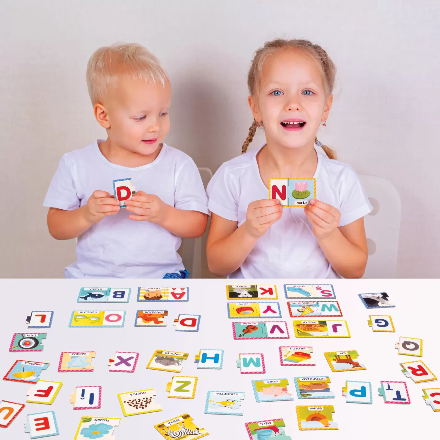 &bdquoAGERINO DE LA A LA Z Un joc educativ format din piese de puzzle cu litere si lucruri care incep cu aceeasi litera, astfel incat copiii sa invete alfabetul si sa faca legatura litera-cuvant.Mai mult, de indata ce copilul este familiarizat cu literele, poate incepe sa citeasca cuvintele litera cu litera, descoperind astfel cuvantul magic al lecturii!.Valori dezvoltate logica, cunostinte despre lume, autonomia, sociabilitatea, memoria, limba straina, aptitudinile motorii. Toate jocurile lui Agerino au fost concepute de specialisti in pedagogie si psihologie si au fost testate in scoli. Varsta recomandata 3+.
