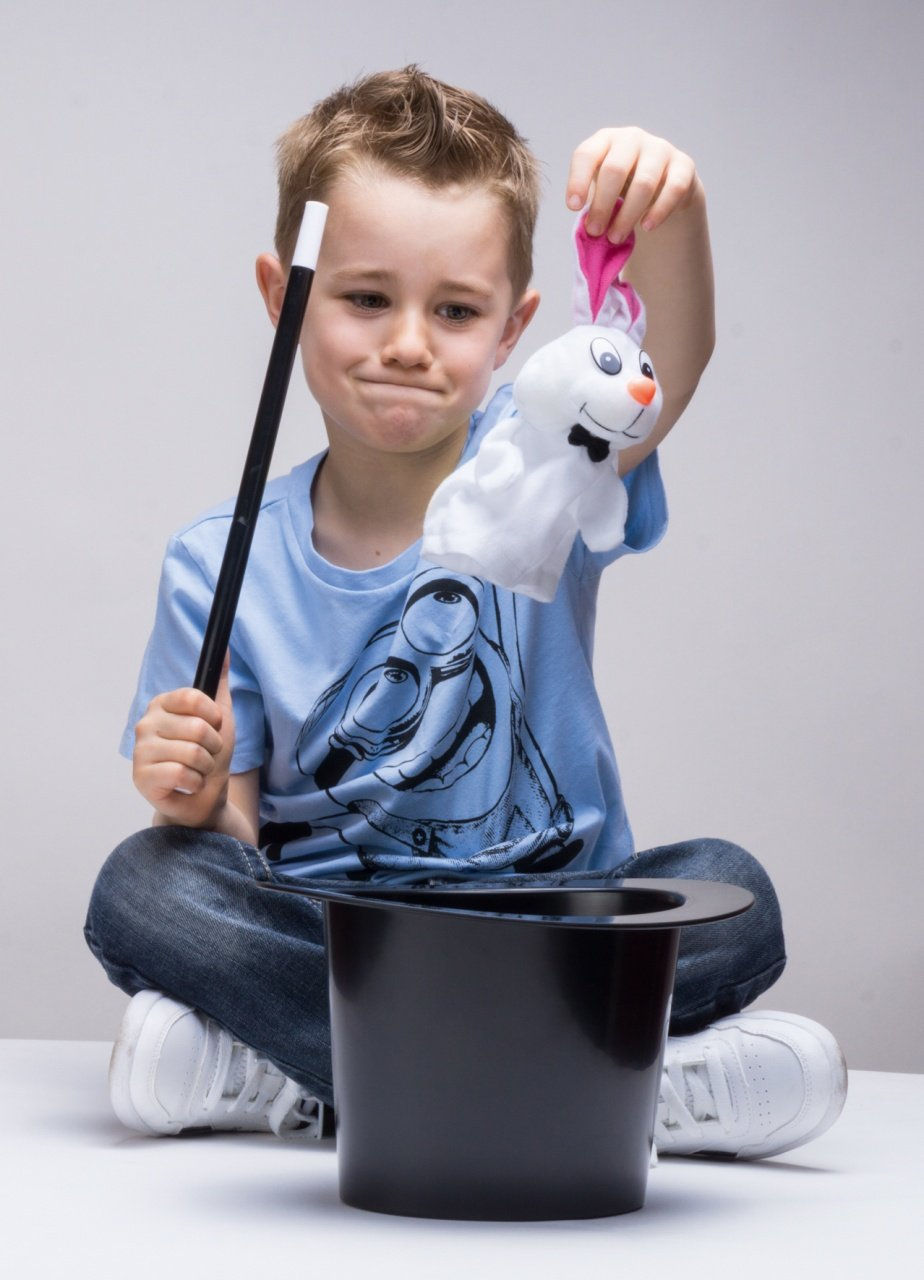 Intră în lumea magiei și a vrăjitoriei! Cu jobenul magic, păpușa iepure și cele 40 de piese de recuzită magice, copiii cu vârsta de peste șase ani pot învăța și realiza 35 de trucuri magice. Cu ajutorul manualului vor învăța în trei pași simpli majoritatea trucurilor. Se explică mai întâi clar de ce recuzită magică este nevoie, apoi cum se pregătește trucul și, în final, cum se realizează. Cu puțină practică, devine ușor să pui în scenă un spectacol de magie plin de trucuri amuzante și reușite care vor uimi și încânta publicul.