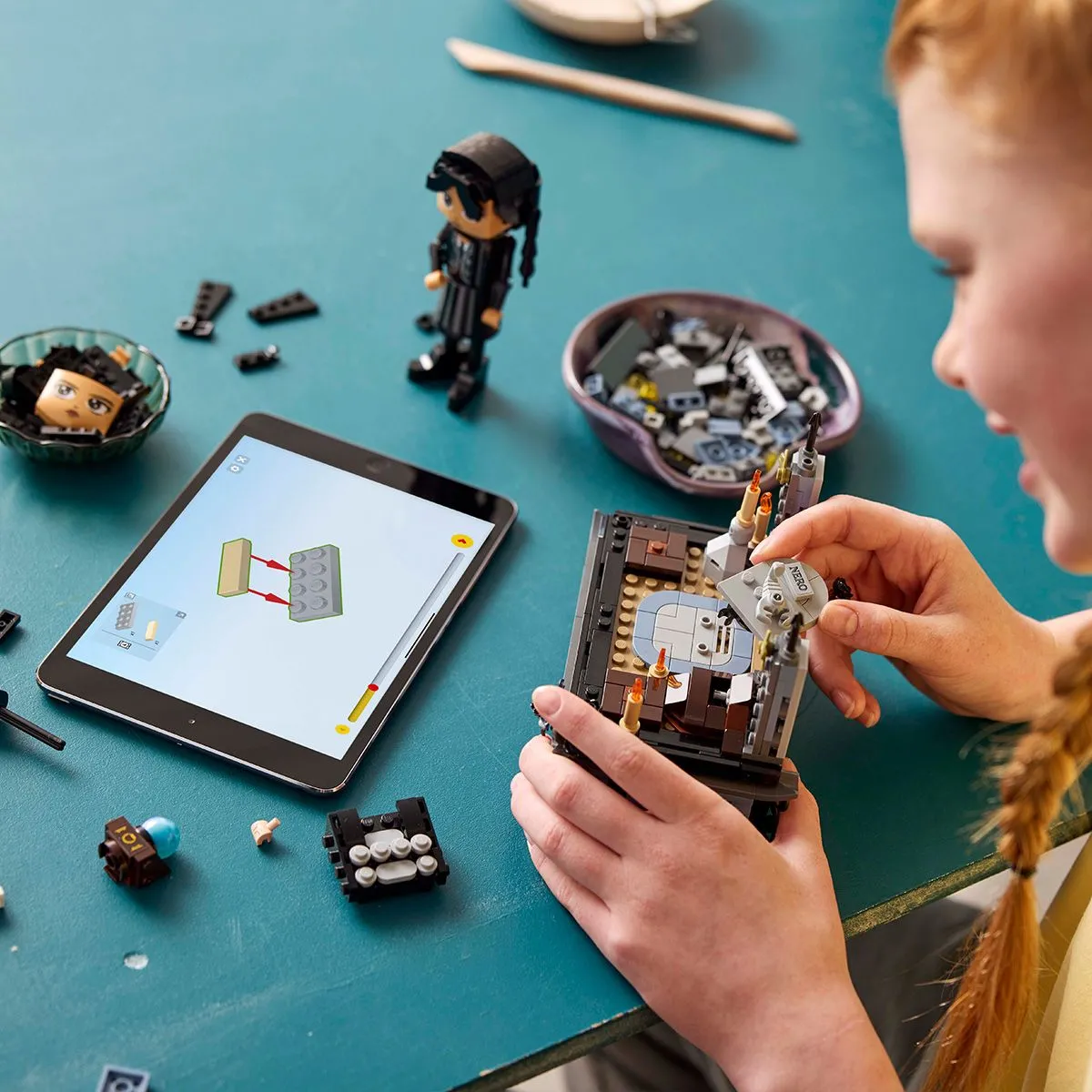 Mistere si haos ii asteapta pe copiii de 10 ani si mai mari in setul Figurina Wednesday Addams (76780). Acest set cadou LEGO Wednesday include un model de colectie, articulat, cu cap, brate si picioare mobile, plus 2 fete si 2 tinute, astfel incat figurina sa poata fi reconstruita. Setul il include pe partenerul loial Thing al lui Wednesday, un stand cu dalii negre si 2 spatii ascunse pentru a pastra comori, cum ar fi rochia Rave'N Dance sau uniforma personajului. In set se afla si poarta Academiei Nevermore si accesoriile lui Wednesday, intre care masina de scris, mormantul lui Nero, un glob de cristal si multe altele. Descopera alte seturi LEGO Wednesday Addams (vandute separat) pentru mai multe optiuni de joaca. Acest model este si un cadou cool de zi de nastere pentru copii.