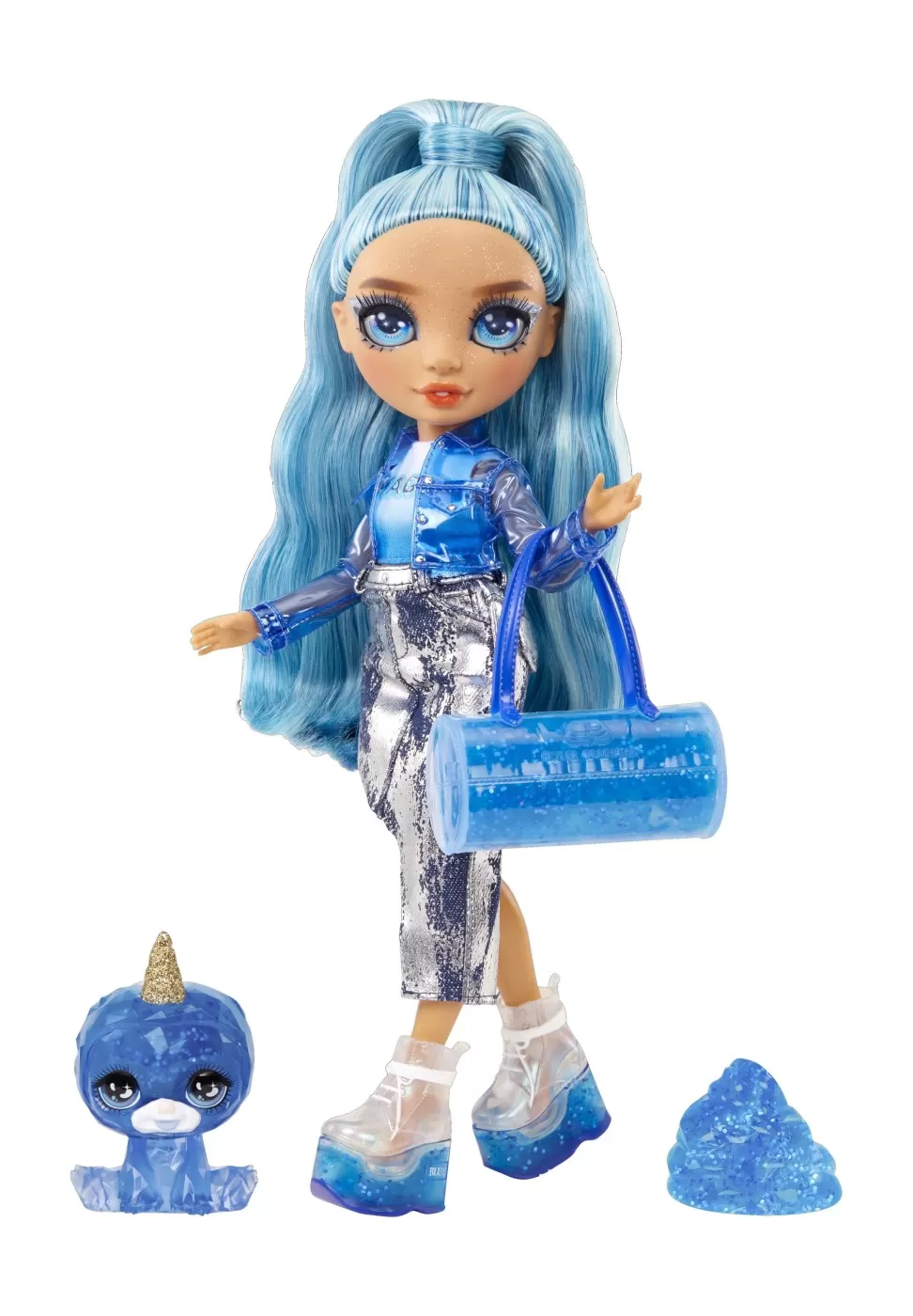Rainbow High inspira copiii sa fie creativi. Curcubeul straluceste puternic, la fel si noile papusi Classic Rainbow! Descopera si joaca-te cu Skyler Bradshaw intr-un nou mod fantastic! Acum, cu Liquid Rainbow Slime exista mai multa culoare, mai multa stralucire, mai multe modalitati de joaca! Si, pentru prima data, papusa ta preferata vine cu propriul animal de companie, care, de asemenea, straluceste!Skyler Bradshaw este articulata pentru scenarii de joaca nelimitate si pline de farmec!Vine cu o tinuta completa inclusa si accesorii. Skyler este imbracata din cap pana in picioare in albastru!Pentru prima data, Skyler are adorabilul ei animal de companie magic cu corn - Bluebell. Pentru a schimba culoarea animalutului, ii poti umple corpul cu slime.Skyler Bradshaw vine cu pantofi draguti si o geanta pe care le poti personaliza si carora le poti schimba culoarea adaugand niste slime.Are trasaturi superbe si detaliate si par frumos!Include o papusa cu tinuta completa, pantofi, geanta, animal de companie, slime si sclipici.Colectioneaza toate papusile Rainbow High din gama Classic Rainbow si vei avea toate culorile curcubeului! Fiecare papusa are propriul stil care ii exprima perfect personalitatea. De asemenea, fiecare papusa vine cu culoarea de slime asortata rosu, portocaliu, galben, verde, albastru, violet sau roz. Exista o multime de moduri de a-ti imagina o joaca distractiva si creativa cu aceste papusi! Imbraca-le in fiecare look, iar daca ai doua sau mai multe papusi din gama Classic Rainbow le poti schimba si asorta piesele vestimentare intre ele!