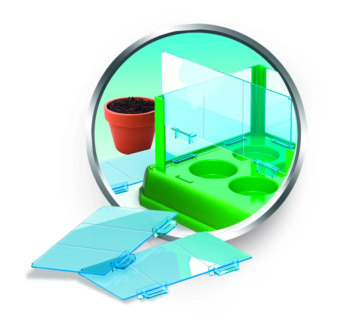 Cu setul Sera mea Biologica poti cultiva plante in orice anotimp si studia procesele de crestere si dezvoltare a organismelor vegetale. Vei invata procesul de cultivare si crestere de plante fara substante chimice. Cu o sera din plastic gata de asamblare, seminte si ghivece biodegradabile, vei fi gata sa descoperi lumea vegetala! Continutul setului: componentele de plastic( baza, coloane de sustinere, pereti transparenti, acoperis) a serei, ghivece biodegradabile, turba, paharut cu capac, pipeta, spatula, penseta, seminte biologice si un manual de instructiuni pentru experimente sigure explicate pas cu pas. Valori dezvoltate: abilitatile motorii, logica, cunostinte despre lumea inconjuratoare, creativitatea, imaginatia, logica si spiritul de observatie. Varsta recomandata 7+.