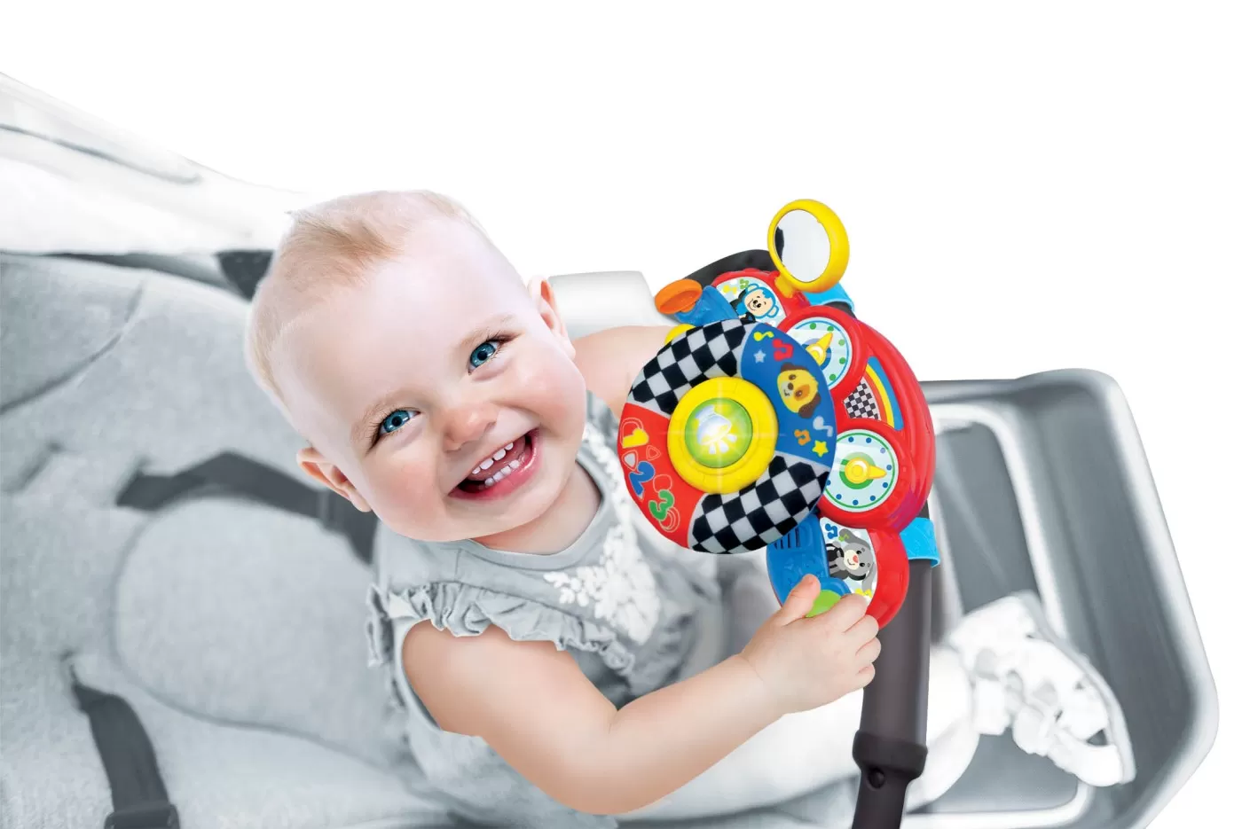 Aceasta jucarie captivanta este conceputa pentru a stimula simturile si dezvoltarea motorie a copiilor incepand cu varsta de 3 luni. Cu melodii incantatoare, efecte sonore realiste si un schimbator de viteza mobil, jucaria ofera o experienta educativa si distractiva. Melodiile atragatoare si efectele sonore captivante sunt menite sa capteze atentia copiilor si sa ii introduca in lumea sunetelor si a muzicii. Volanul semi-moale, care se roteste complet la 360 de grade si este insotit de lumini intermitente, adauga o dimensiune suplimentara de distractie si explorare. Aceasta functionalitate incurajeaza copiii sa isi dezvolte abilitatile motorii fine si coordonarea mana-ochi. Jucaria este conceputa pentru a fi versatila, putand fi atasata cu usurinta la carucior pentru distractie in timpul plimbarilor sau folosita pe masa sau pe podea acasa, adaptandu-se nevoilor fiecarui copil si parinte. Aceasta flexibilitate face ca jucaria sa fie o alegere ideala pentru a fi integrata in rutina zilnica a micutilor, oferindu-le momente de bucurie si invatare.