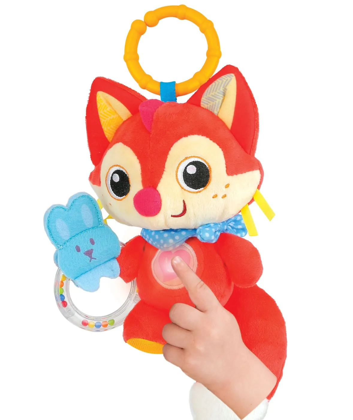 Agita si scutura vulpita adorabila pentru a oferi micutului tau o experienta plina de distractie si stimulare senzoriala! Aceasta jucarie captivanta este conceputa pentru copiii cu varsta incepand de la 3 luni si ofera o varietate de activitati care ii vor fascina si ii vor dezvolta simturile in mod placut. Vulpita vine echipata cu inele zornaitoare texturate, ideale pentru dezvoltarea simturilor tactile ale copilului. Butonul luminos, care poate fi apasat pentru a activa sunete amuzante si fraze, contribuie la dezvoltarea auzului si curiozitatii. Pentru o functionalitate practica, jucaria include un inel din plastic pentru atasare usoara. Acest inel permite fixarea vulpitei pe diferite suprafete sau dispozitive precum carucioare, scaune auto sau chiar leagane. Prin interactiunea activa cu vulpita, micutul tau isi va dezvolta abilitatile motorii fine, va invata despre cauzalitate (cum sa produca sunete prin agitarea jucariei) si va experimenta diverse texturi si senzatii tactile. Pe langa beneficiile senzoriale, jucaria promoveaza si dezvoltarea abilitatilor cognitive prin stimularea atentiei si concentrarii. Sunetele amuzante si frazele incurajeaza copilul sa exploreze si sa interactioneze cu mediul sau inconjurator intr-un mod care sa ii stimuleze curiozitatea si imaginatia.